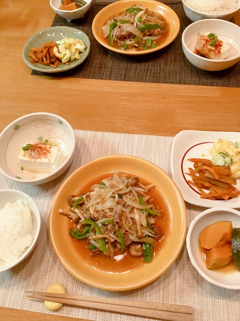 あるもので晩ごはん 豚バラキャベツピーマンの胡麻味噌炒