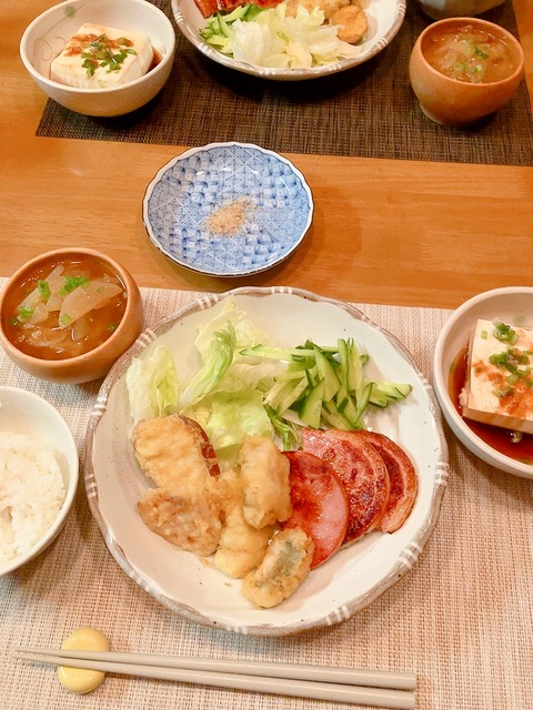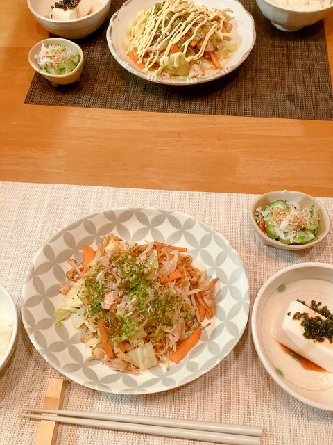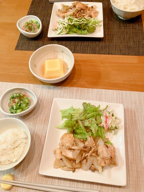おはようございます。昨日のお昼ごはんです。メインは豚こまと玉ねぎの塩レモン炒めです。さっぱり美味しい炒めもので、暑い日にピッタリですよ。レ···