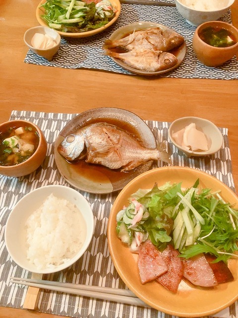組み合わせは気にしなーい たこ焼きの残りと鯛の煮付け